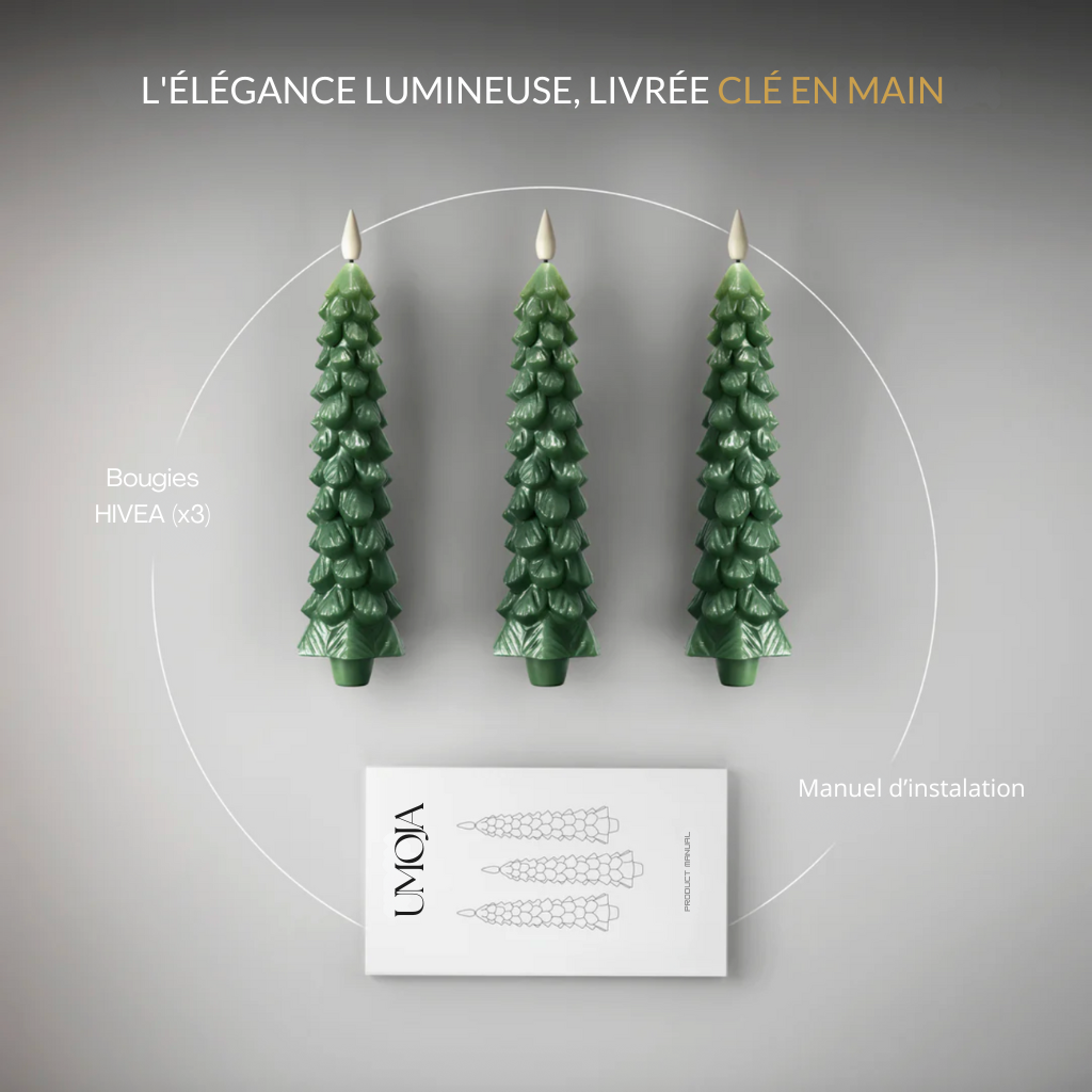Les Bougies HIVÉA transforment votre intérieur en un cocon lumineux et festif. Leur design en forme de sapin diffuse une lueur douce et réconfortante, idéale pour recréer l’ambiance féérique de Noël.
